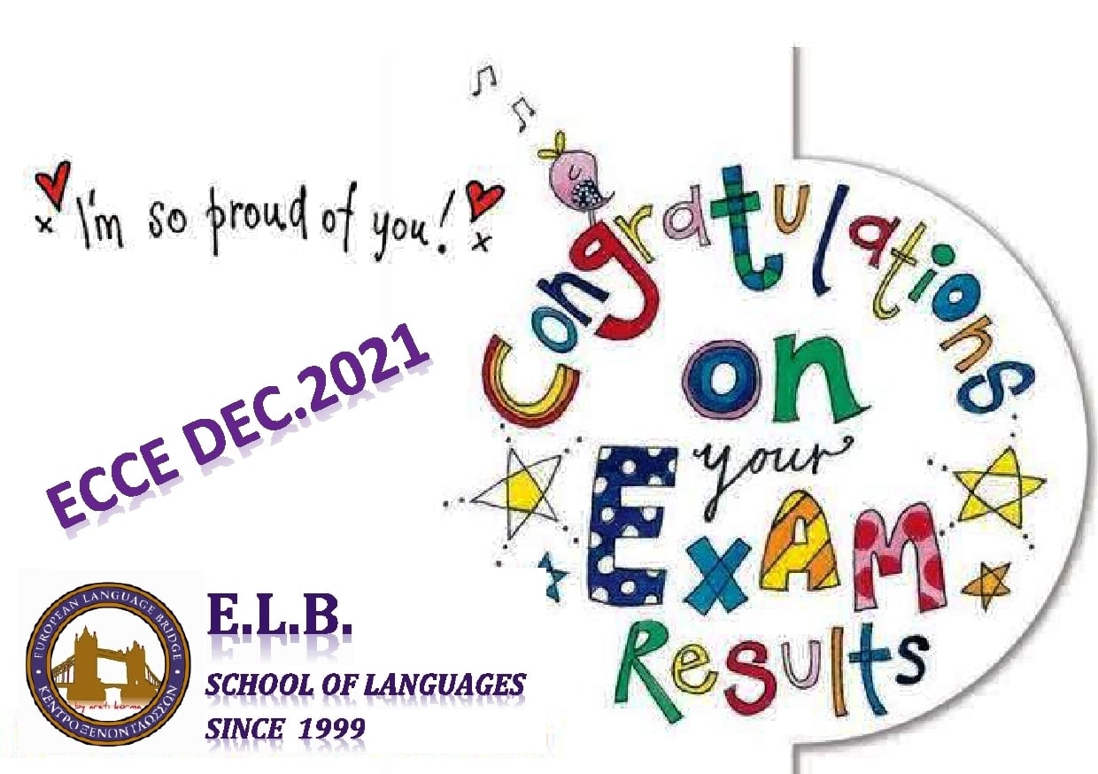 Ανακοινώσεις · Αποτελέσματα ECCE – εξεταστική Δεκεμβρίου 2021 28 Ιανουαρίου, 2022·Και να οι πρώτες επιτυχίες του ακαδημαϊκού έτους 2021-2022. Αγγίξαμε και πάλι το 100% επιτυχίας!… Διαβάστε Περισσότερα